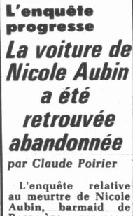 Au moment des faits, la police recherchait toujours la voiture de Nicole, une Rambler modèle 1964 deux portes et portant le numéro de plaque 384-250 Québec 1972. On recherchait également un inconnu qui aurait passé la soirée du 16 décembre avec elle. Nicole n’aurait pas été agressée sexuellement.